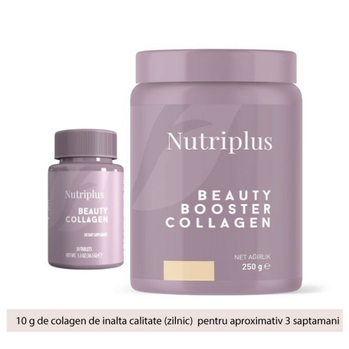 Nutriplus Beauty Booster Colagen 250g + BEAUTY COLAGEN 30 capsule = Frumusețe pură, fără compromisuri